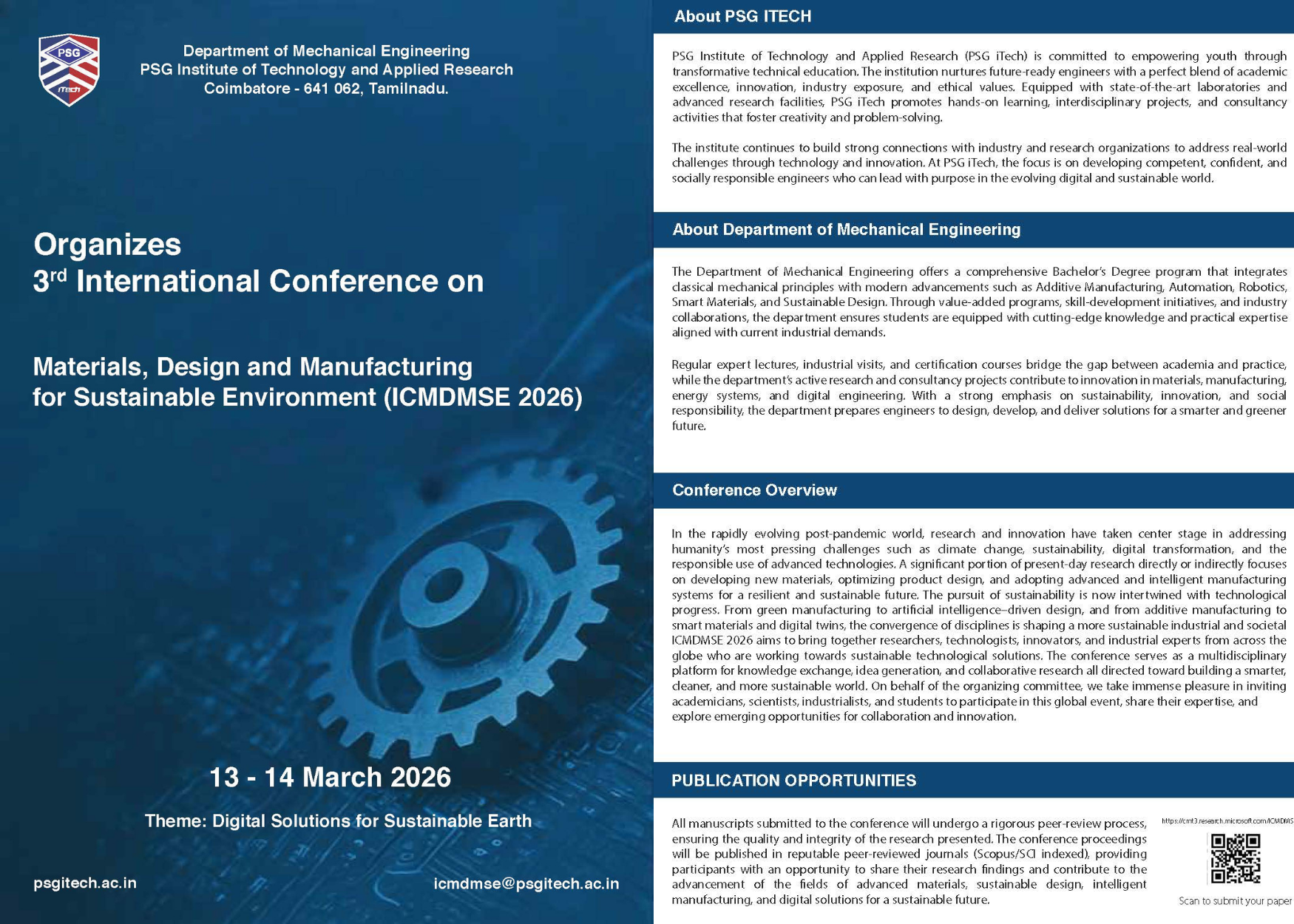 A Bachelor’s in mechanical engineering couldn’t have been better anywhere else than PSG I tech. My overall journey in the institution from the first day has been highly engaging and challenging. The college has served as an excellent platform for me to engage in various clubs, research activities, and inter-departmental projects, so we are not just learning things here but also implementing our academic knowledge to solve real-life engineering problems. The college also has different student teams in which students from various engineering streams interact, learn and work together to design and develop concepts and solutions. My involvement in these activities has helped me explore my interests, strengths, and capabilities as an engineer. As I am unfolding a new chapter in my life and kickstarting my career as a design engineer, I realise how I have gradually progressed professionally and personally throughout my years in college. I now know that I have learned, grown and evolved into a better person, and I cannot feel grateful enough for everyone who has supported me in this journey.
